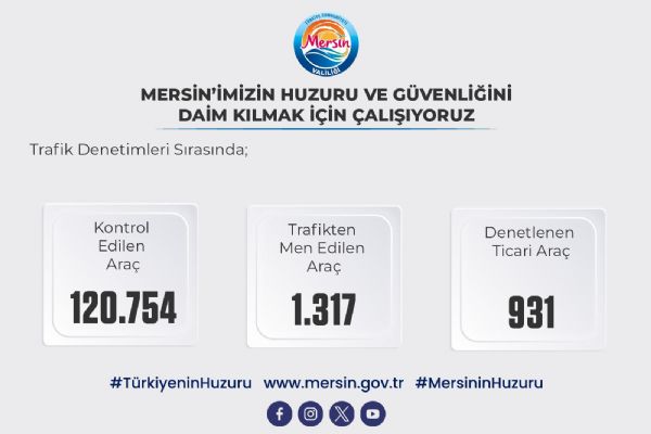 Trafik denetimleri kapsamında; 120.754 araç kontrol edilmiş, 1.317 araç trafikten men edilmiş, 931 ticari taksi denetlenmiştir.