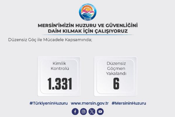 'Düzensiz Göç ile Mücadeleye Yönelik Huzur Uygulaması' kapsamında; 1.331 kimlik kontrolü yapıldı. 6 yabancı, Düzensiz Göçmen Ön Kabul ve Sevk Merkezine gönderilmiştir." bilgileri verildi.