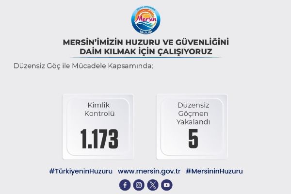 'Düzensiz Göç ile Mücadeleye Yönelik Huzur Uygulaması' kapsamında; 1.173 kimlik kontrolü yapıldı.
