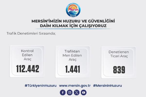 Trafik denetimleri kapsamında; 112.442 araç kontrol edilmiş, 1.441 araç trafikten men edilmiş, 839 ticari taksi denetlenmiştir.