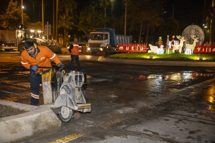 MERSİN BÜYÜKŞEHİR ASFALTLARI GECE YENİLİYOR...