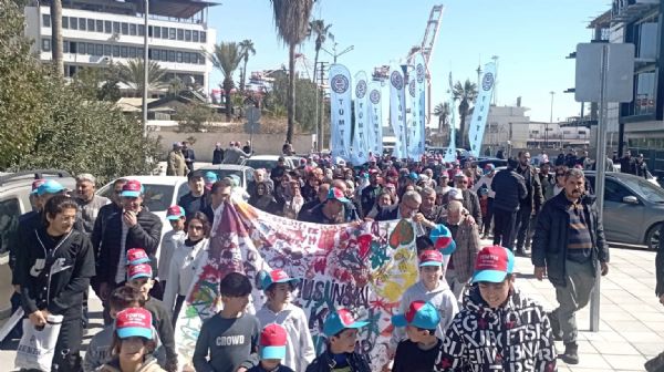 Mersin Uluslararası Liman İşletmeciliği AŞ’ye bağlı taşeron firma Özgüneş Taşımacılık’ta çalışmalarına son verilen işçilerin eylemi devam ediyor.