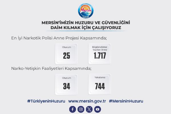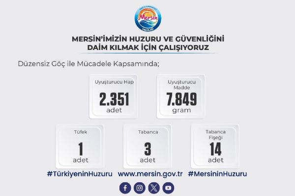 "Mersin’imizin huzuru ve güvenliğini daim kılmak için Emniyet, Jandarma ve Sahil Güvenlik birimlerimiz gece gündüz çalışmaya devam etmektedir.